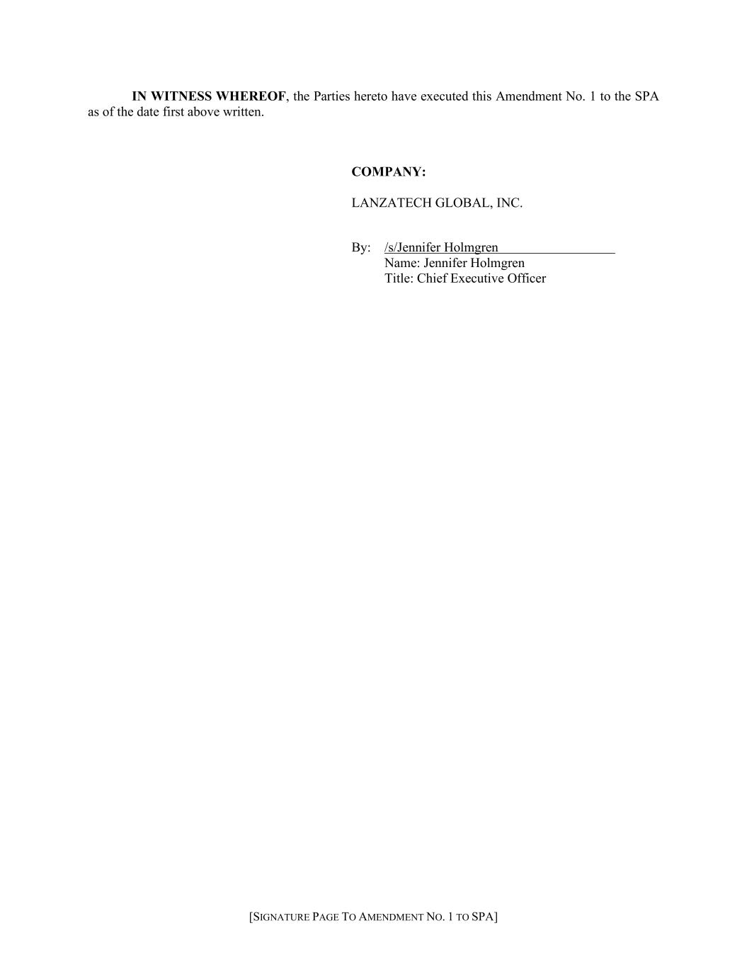 [SIGNATURE PAGE TO AMENDMENT NO. 1 TO SPA] IN WITNESS WHEREOF, the Parties hereto have executed this Amendment No. 1 to the SPA as of the date first above written. COMPANY: LANZATECH GLOBAL, INC. By: /s/Jennifer Holmgren Name: Jennifer Holmgren Title: Chief Executive Officer