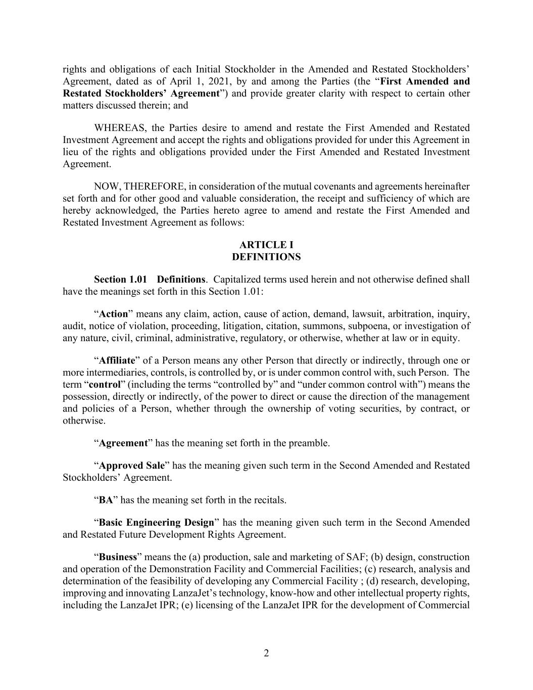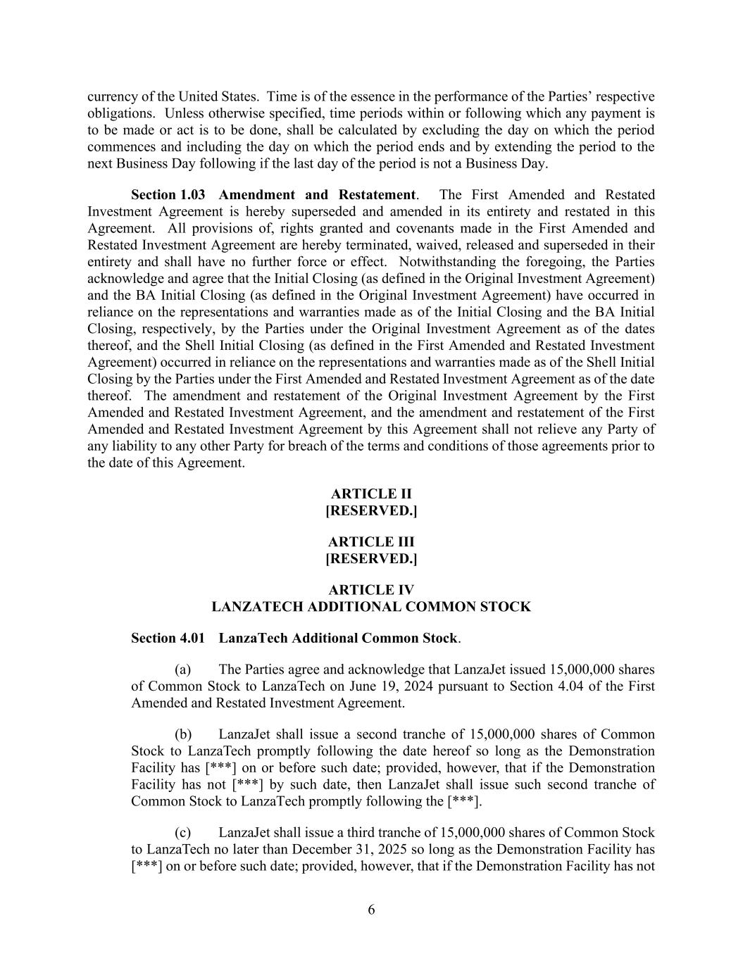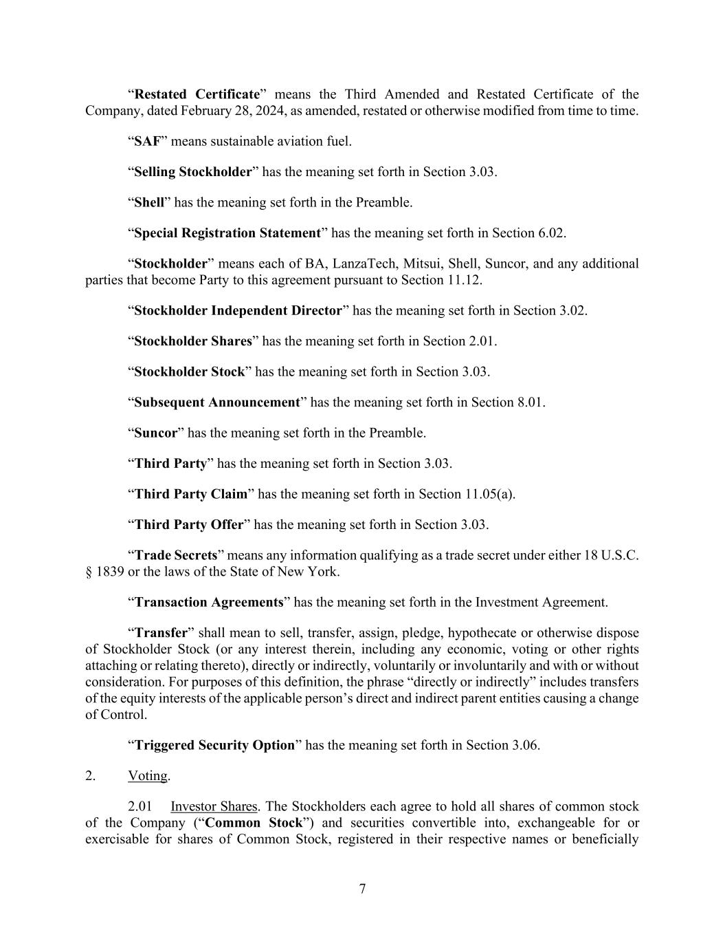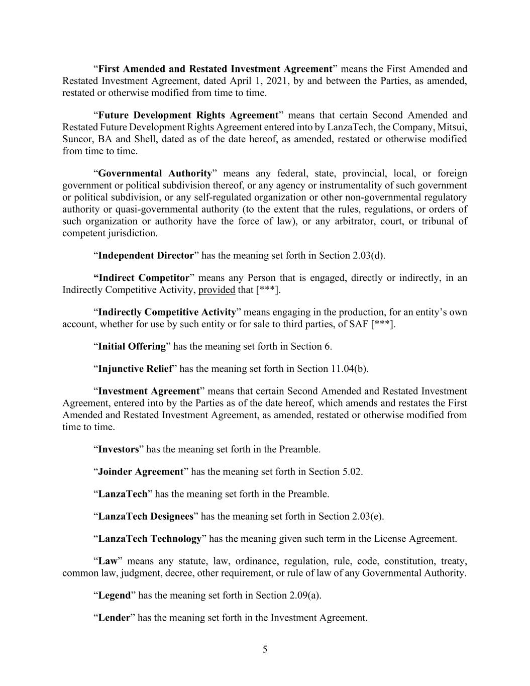 | 10.1*# | | Second Amended and Restated Investment Agreement, dated October 16, 2025, by and among LanzaTech, Inc., LanzaJet, Inc., Mitsui & Co., Ltd., Suncor Energy Inc., British Airways PLC and Shell Ventures LLC. |