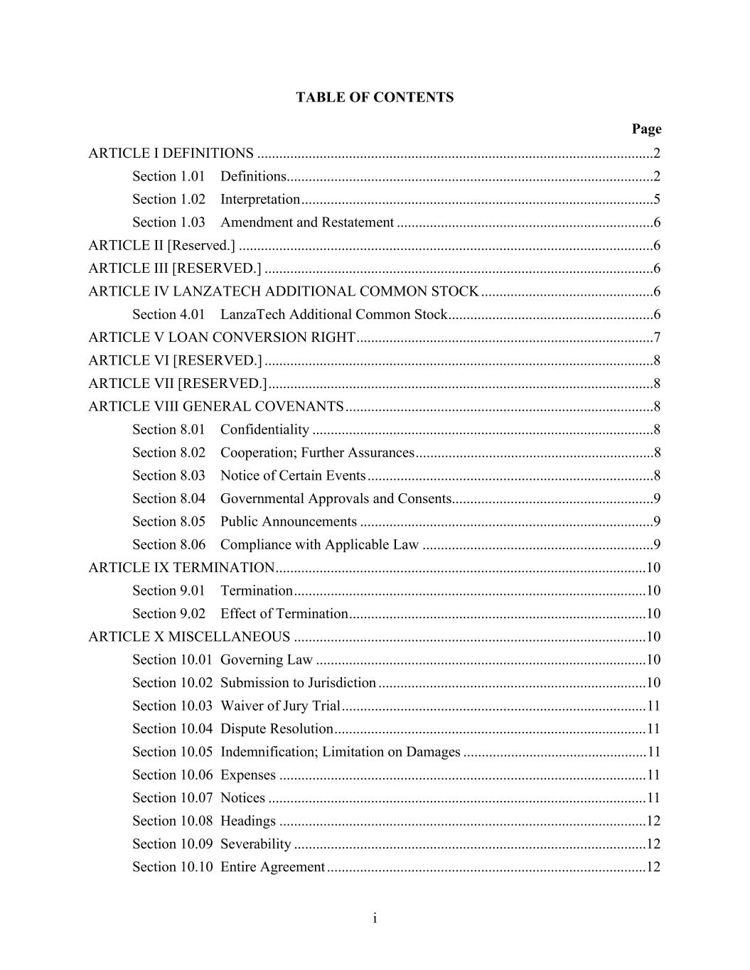 TABLE OF CONTENTS