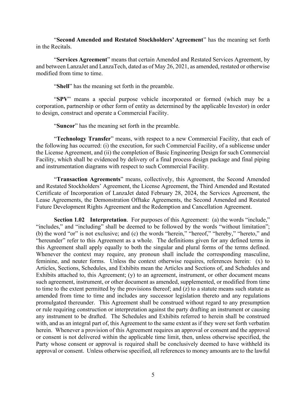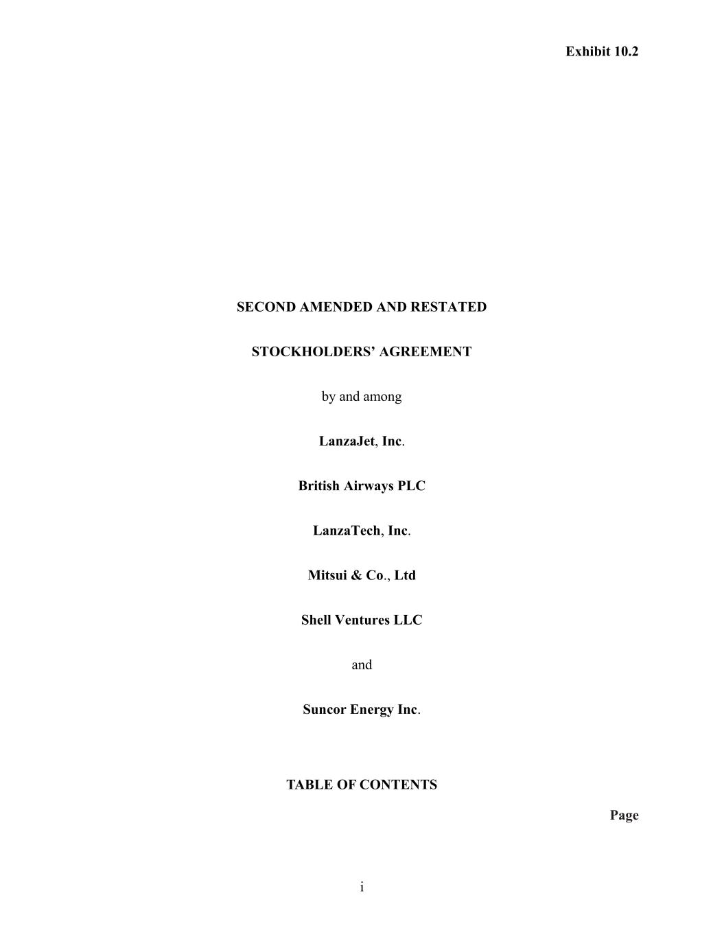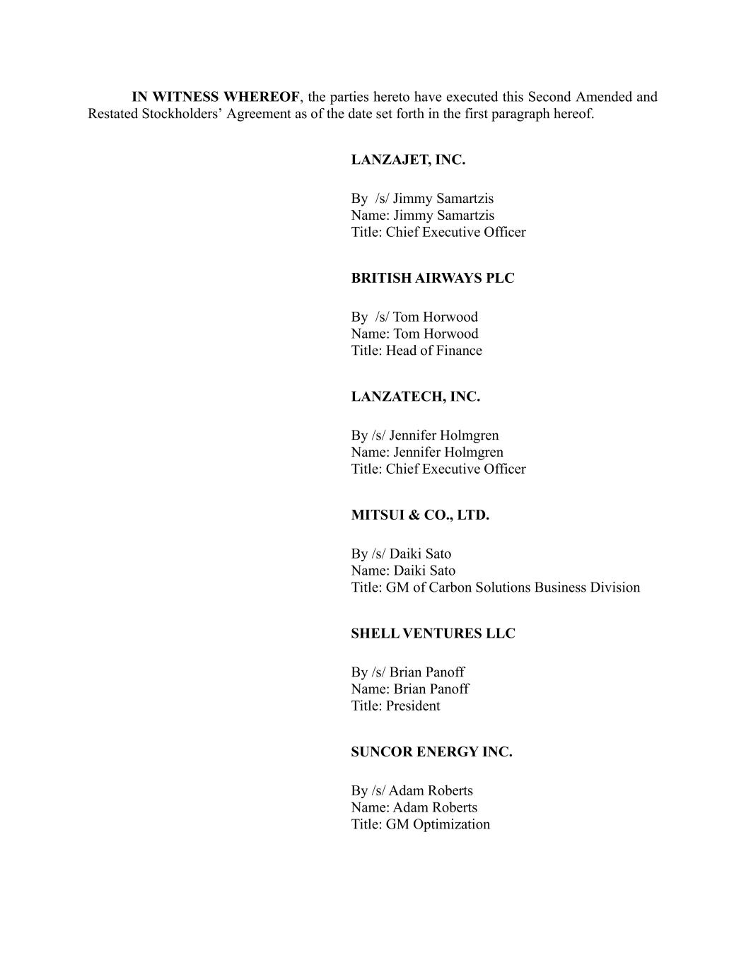 | 10.2*# | | Second Amended and Restated Stockholders’ Agreement, dated October 16, 2025, by and among LanzaJet, Inc., LanzaTech, Inc., Mitsui & Co., Ltd., Suncor Energy Inc., British Airways PLC, and Shell Venture.s LLC. |